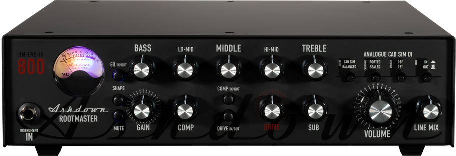At its core, the Rootmaster 800 EVO III is engineered to cater to the demands of hard-working bass players. It boasts one of the most comprehensive EQ systems in the industry,allowing you to sculpt your sound with precision. Additionally, it incorporates the time-tested Ashdown Sub Harmonic Generator, a straightforward yet effective Compressioncontrol, and a variable Valve Emulated drive for a wide range of tonal possibilities. Inessence, the Rootmaster EVO III serves as the Swiss army knife of bass amps, ready to meetyour every need on stage or in the studio.