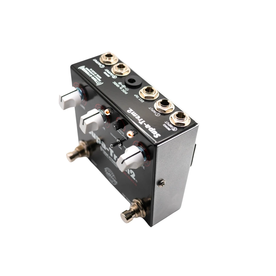 A while back I started wondering what would happen if I took two completely separate Supa-Trem circuits and joined them together! Not fake-stereo like other Tremolo, Chorus, Phase, or Flanger pedals, these merely invert the signal at the output and send it to another jack...boring. The CS-ST2 v2 has two identical seperate circuits in TRUE-STEREO with two INs and two OUTs! Its got enhanced-bypass thanks to hi-quality JFET buffered outputs. The CS-ST2 v2 is the IDEAL device to place at the end of your chain...run cables as long as you want, use it as your amp splitter.