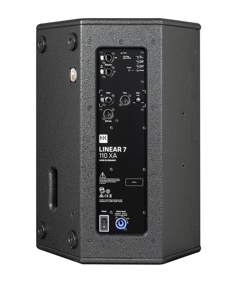 The LINEAR 7 110 XA is an active multifunctional speaker with modern DSP technology. The mixed IIR/FIR filtering ensures a very linear frequency response and low system latency. This makes the LINEAR 7 110 XA also ideal for use as a stage monitor. The heart of the LINEAR 7 110 XA is the integrated DSP, which can be controlled via the HK Audio DSP CONTROL software. The HK Audio DSP CONTROL software offers the user numerous options for on-site system equalization and adjustment, such as a 10-band PEQ or group functions. Four DSP presets can be selected directly on the speaker without a PC connected. In addition to three standard presets (Flat, Monitor and Low Cut), a fourth user-designed preset can also be recalled. The LINEAR 7 also features a new generation of improved tweeter and woofer transducers. In combination with the tweeter horns, which have also been newly developed, these offer the highest acoustic performance within the entire LINEAR family.