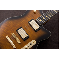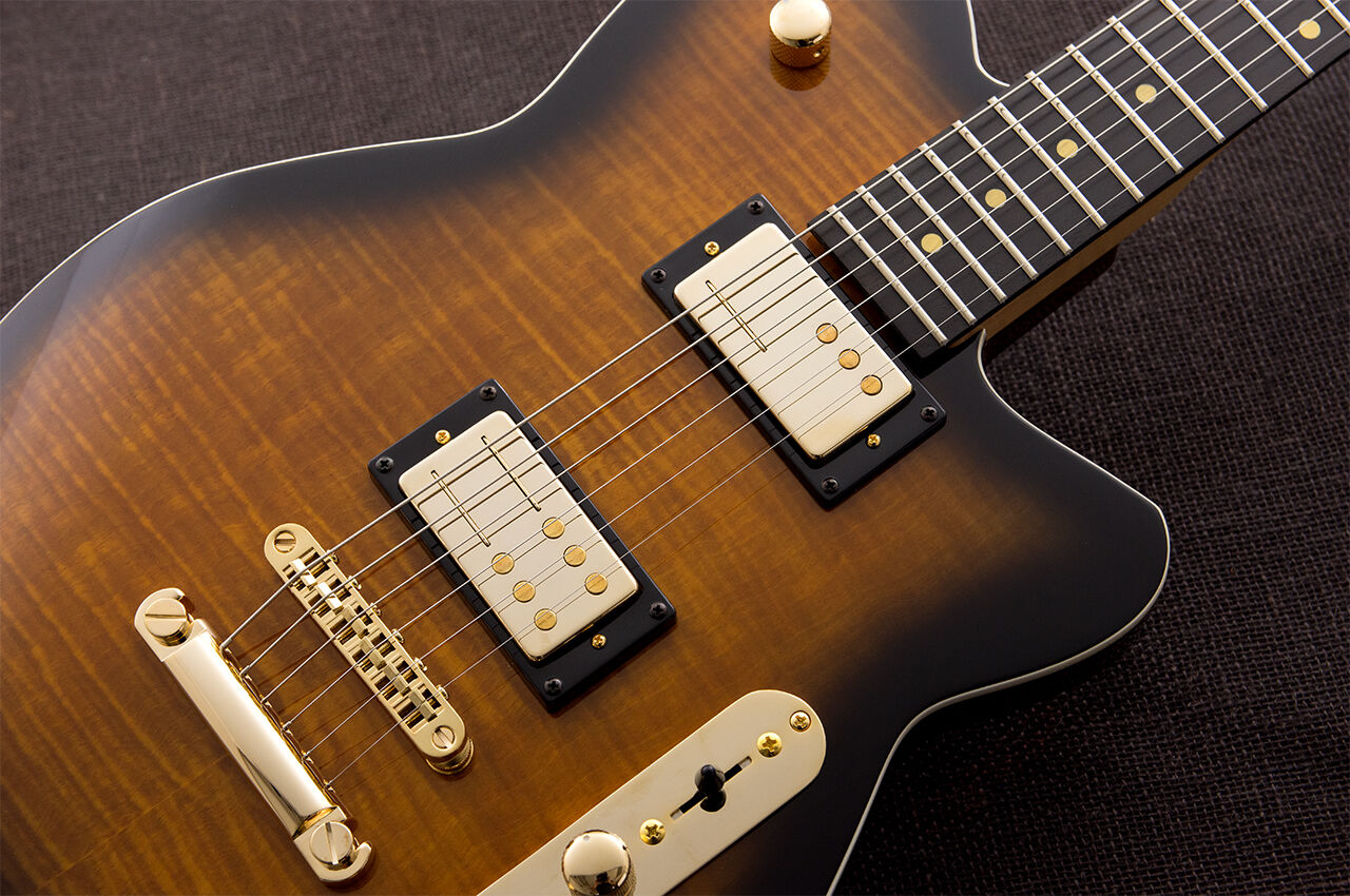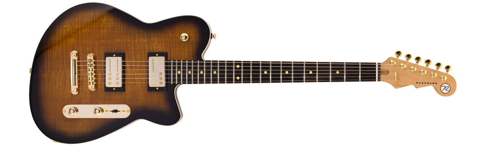 The guitar that everyone’s asking for — The Reverend Charger RA! With a Railhammer Hyper Vintage Humbucker at the bridge, a Railhammer Nuevo 90 at the neck, flame maple tops and roasted maple necks, this guitar is fierce.