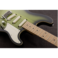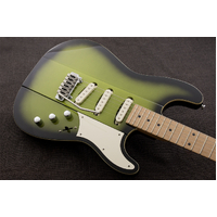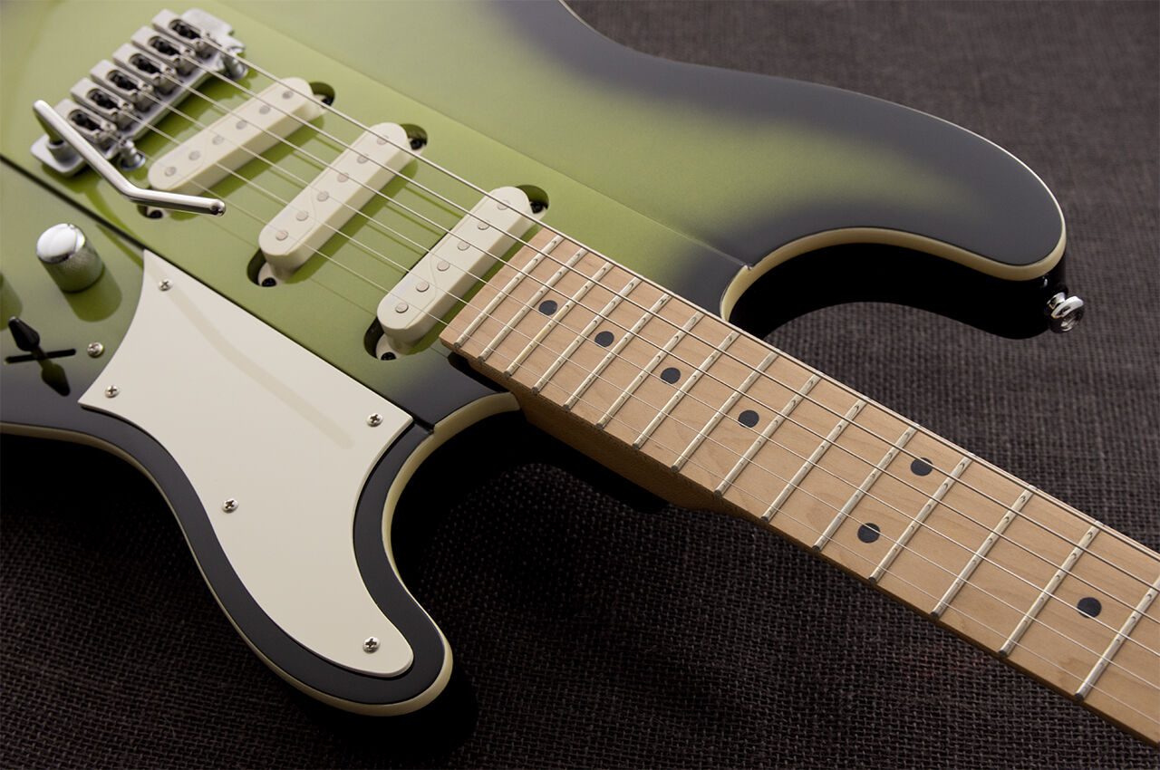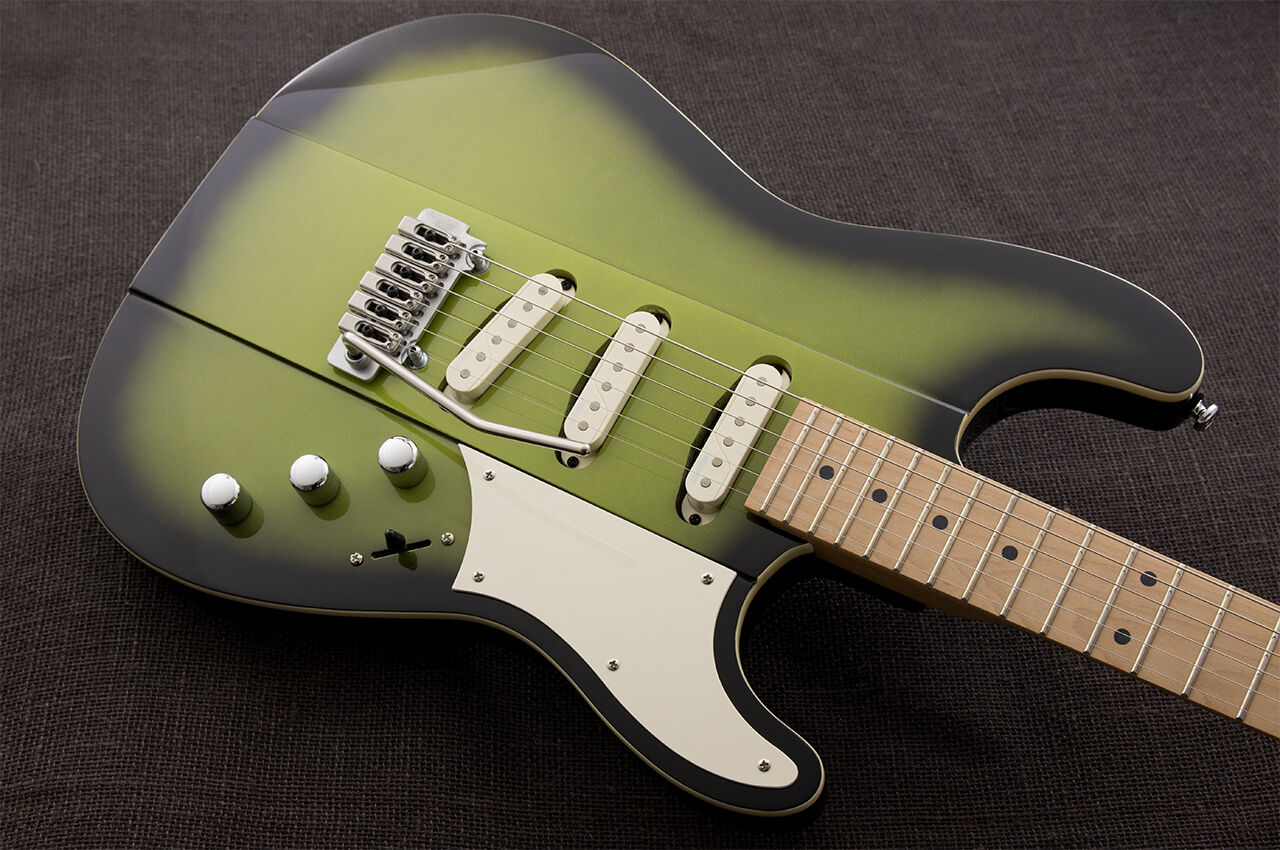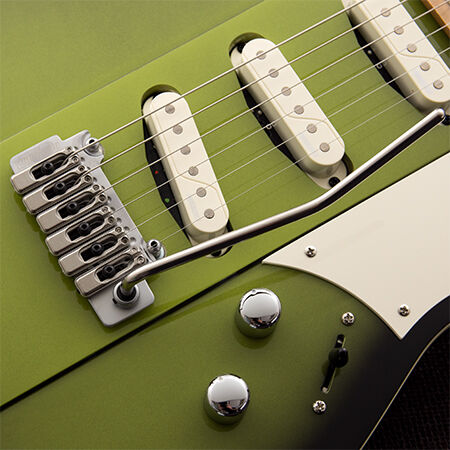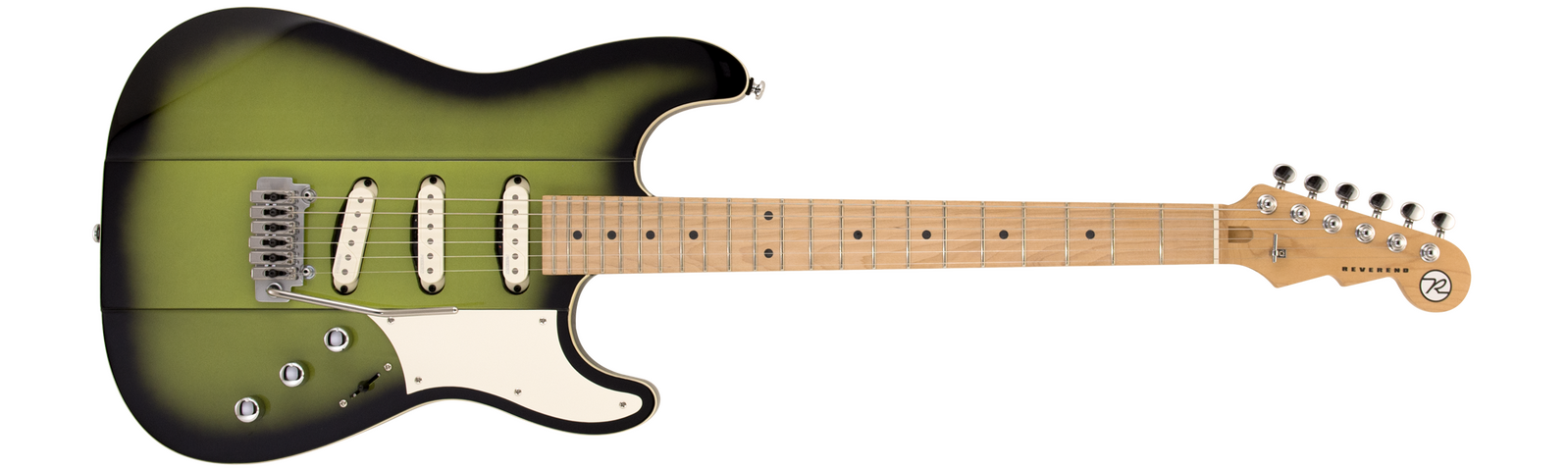 The classic S-style body but thoroughly Gristleized! The Reverend Greg Koch Gristle ST is resonant and responsive. The guitar has a slightly larger profile with a raised center section. A chamber under the pickguard adds punch. Hum-free Fishman Greg Koch Signature pickups and a Wilkinson VS100N tremolo add the finishing touches. Up your S game with this modern-retro tone machine.